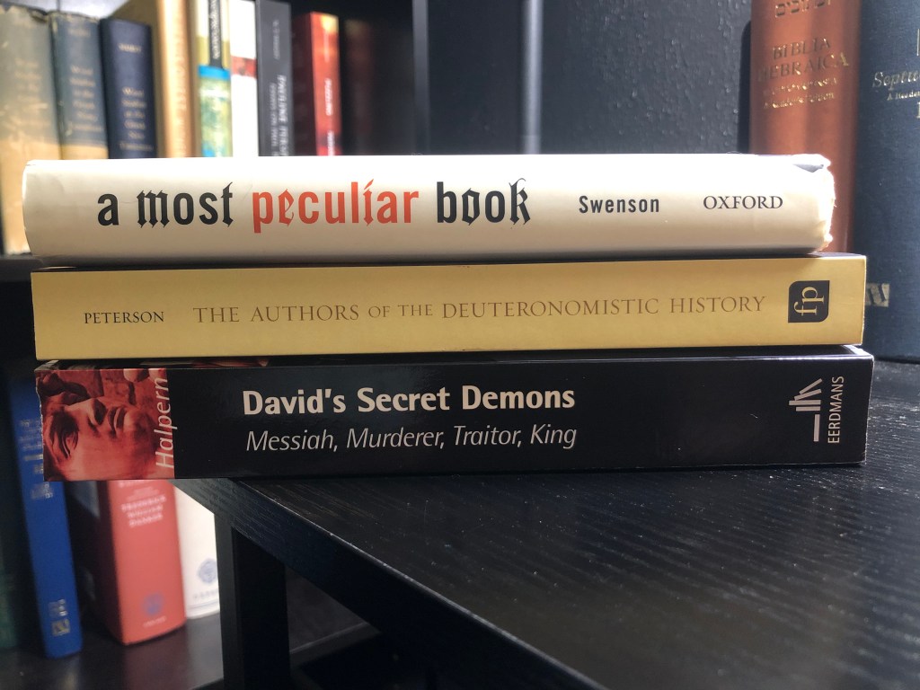 [2] Baruch Halpern, David’s Secret Demons: Messiah, Murderer, Traitor, King (Grand Rapids, MI: Wm. B. Eerdmans Publishing Co., 2001), 8.