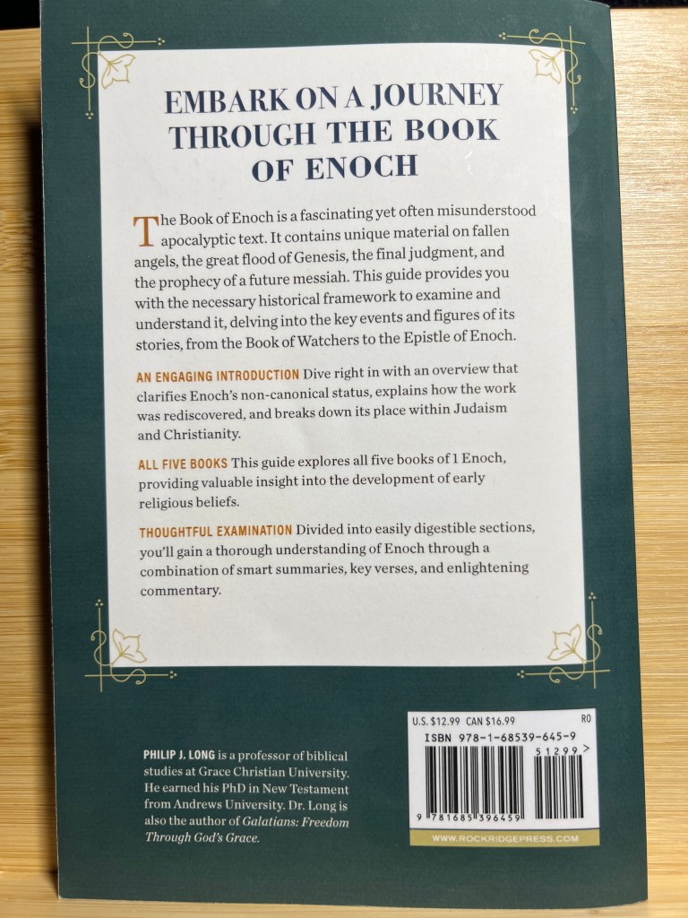 Phillip Long (PhD, Andrews University) is a New Testament scholar teaching at Grace Christian University in Grand Rapids, Michigan. Though he is a published author, including a work on Paul’s letter to the Galatians,[9] Long is perhaps best known for his website Reading Acts and his role as curator of the Biblical Studies Carnival. However, in late 2022 he put out an introduction and guide to 1 Enoch entitled The Book of Enoch for Beginners: A Guide to Expand Your Understanding of the Biblical World (Rockridge Press). Similar in format to Brandon Hawk’s Apocrypha for Beginners,[10] Long’s volume aims to bring “a summary and commentary on 1 Enoch…for the nonspecialist” (p. viii). Speaking as a non-specialist, Long certainly gets the job done with this book.